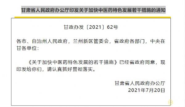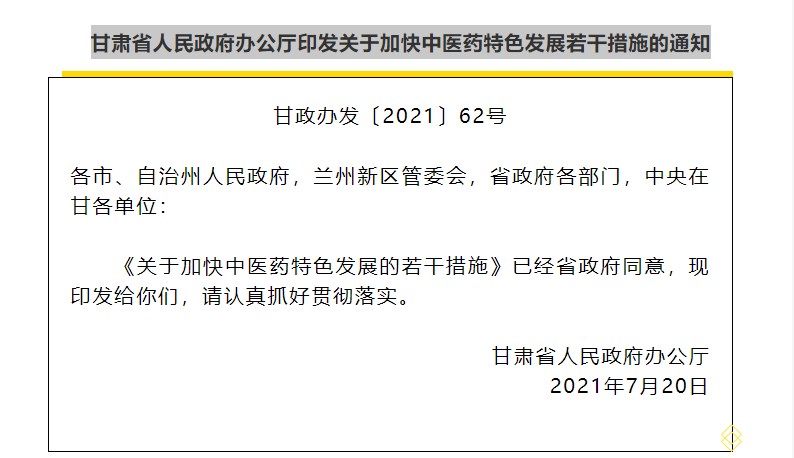 (三)辦好中醫(yī)藥品牌節(jié)會。發(fā)揮國家中醫(yī)藥產業(yè)發(fā)展綜合試驗區(qū)平臺優(yōu)勢,持續(xù)舉辦好中國(甘肅)中醫(yī)藥產業(yè)博覽會“國字號”品牌節(jié)會,構建中醫(yī)藥國際交流合作、新政策新標準新技術新產品權威發(fā)布解讀、創(chuàng)新發(fā)展成果展示、助推鄉(xiāng)村振興、文化傳承創(chuàng)新“五個平臺”,提升我省中醫(yī)藥核心競爭力和品牌影響力。(省衛(wèi)生健康委、省發(fā)展改革委、省農業(yè)農村廳、省工信廳、省商務廳、省藥監(jiān)局負責)