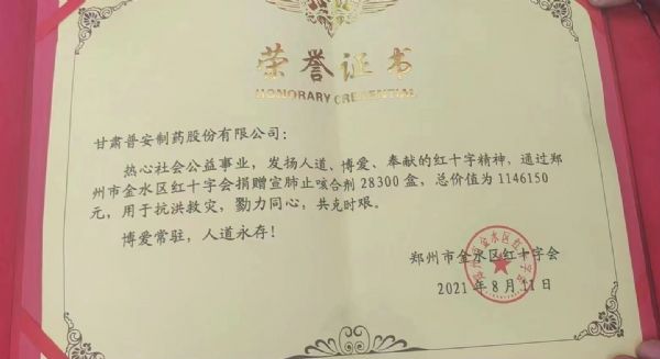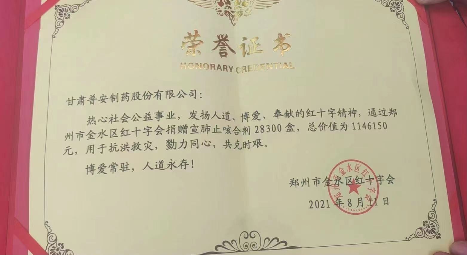 近期,國內(nèi)多地相繼發(fā)生新冠疫情,疫情防控形勢非常嚴(yán)峻、復(fù)雜,而河南省多地又受到洪澇災(zāi)害影響,洪澇災(zāi)害后面臨著災(zāi)情、疫情雙重挑戰(zhàn)。為履行社會責(zé)任,彰顯“一方有難,八方支援”的擔(dān)當(dāng),作為國有企業(yè),甘肅藥業(yè)集團(tuán)普安制藥會同中華中醫(yī)藥學(xué)會第一時(shí)間組織抗疫物資的捐贈(價(jià)值114.6萬元的藥品)供災(zāi)后防疫使用,助力河南省做好災(zāi)后疫情防控工作。