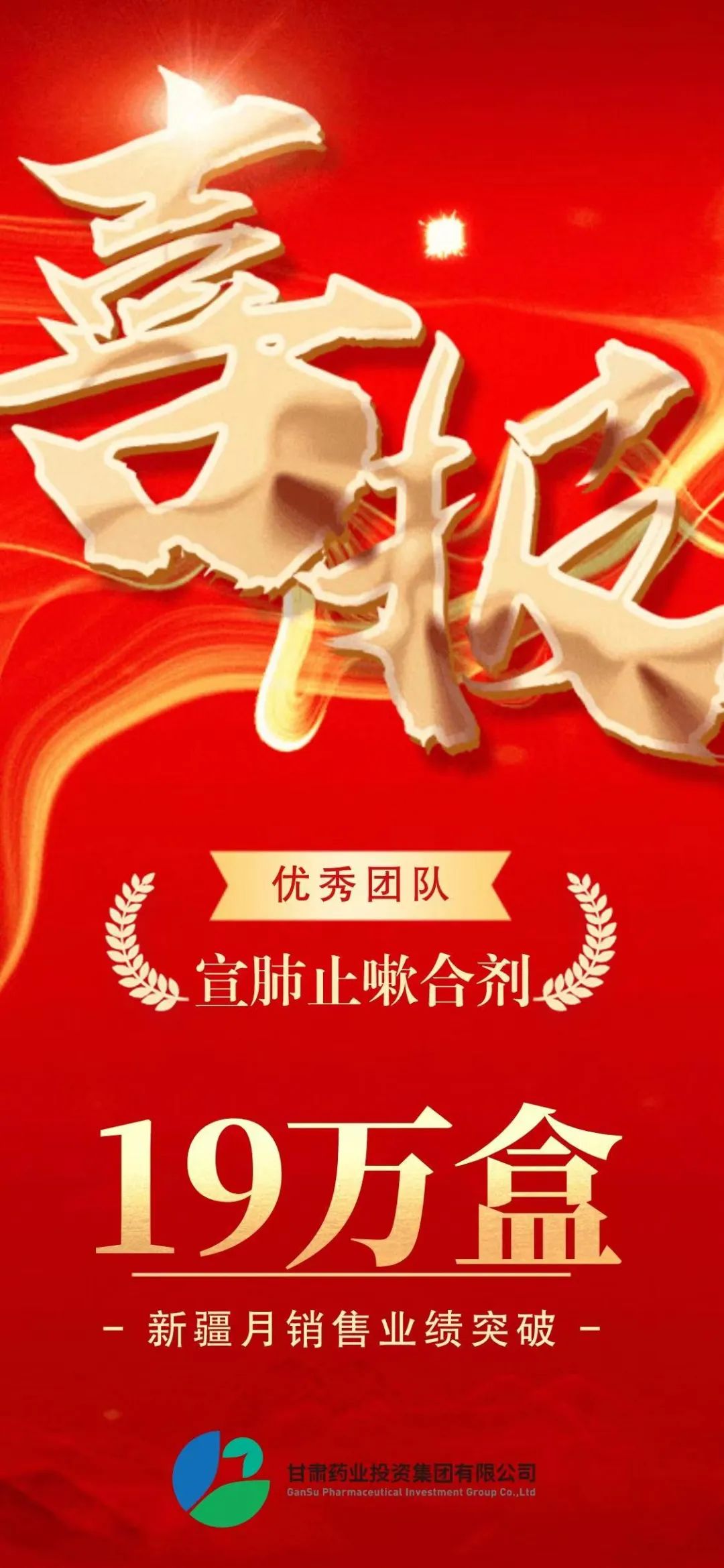 喜報(bào)!宣肺止嗽合劑新疆月銷(xiāo)售業(yè)績(jī)突破19萬(wàn)盒