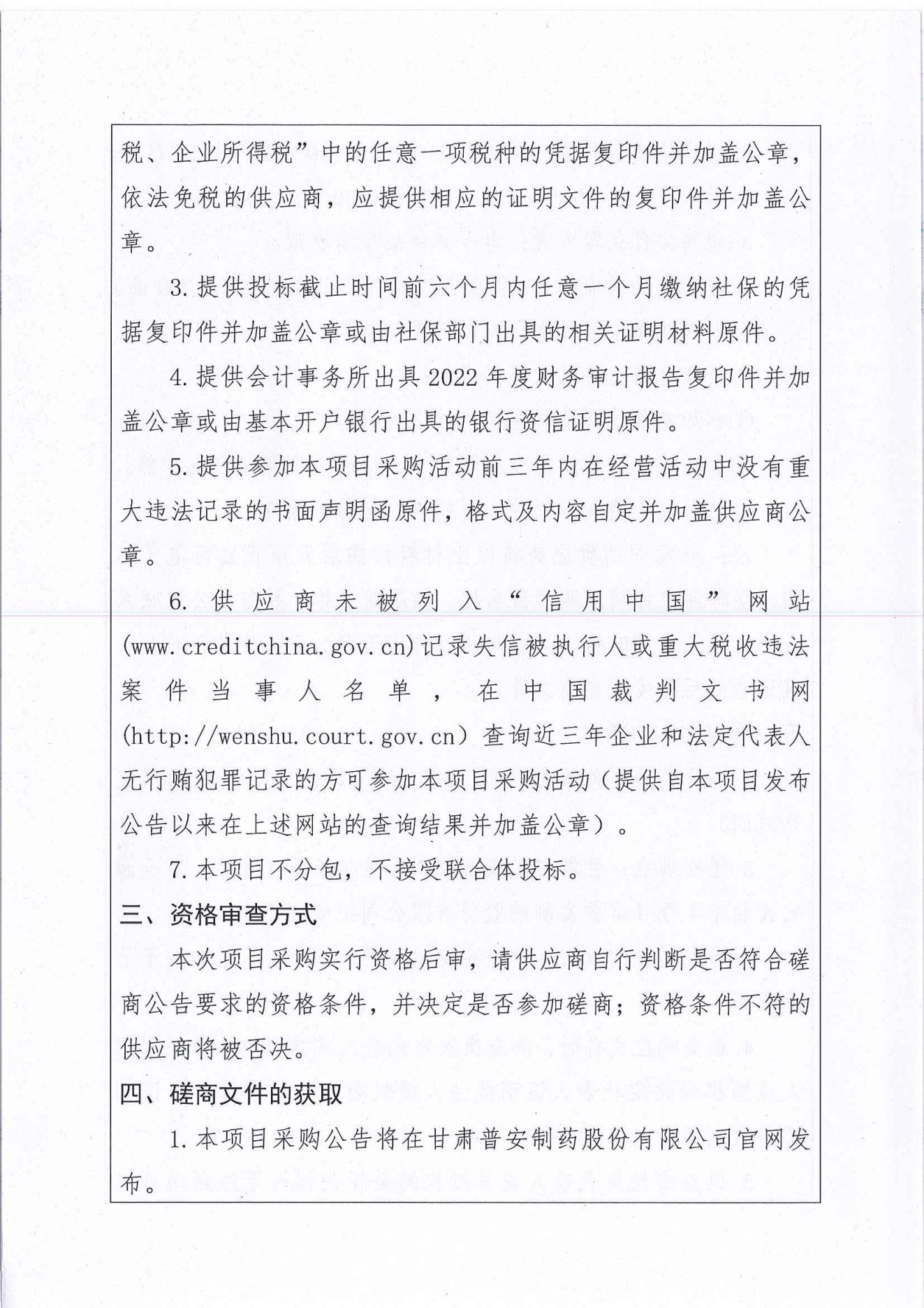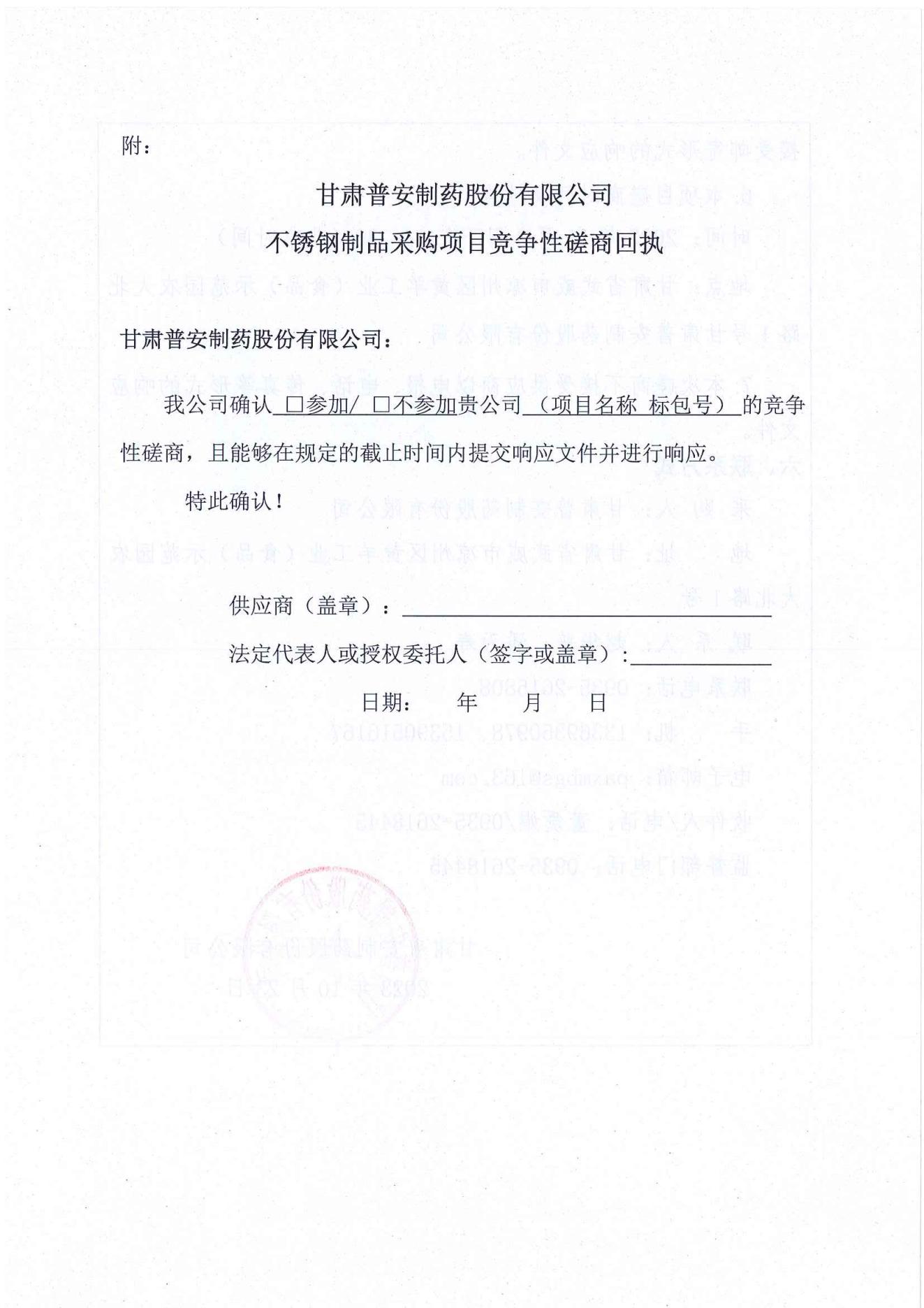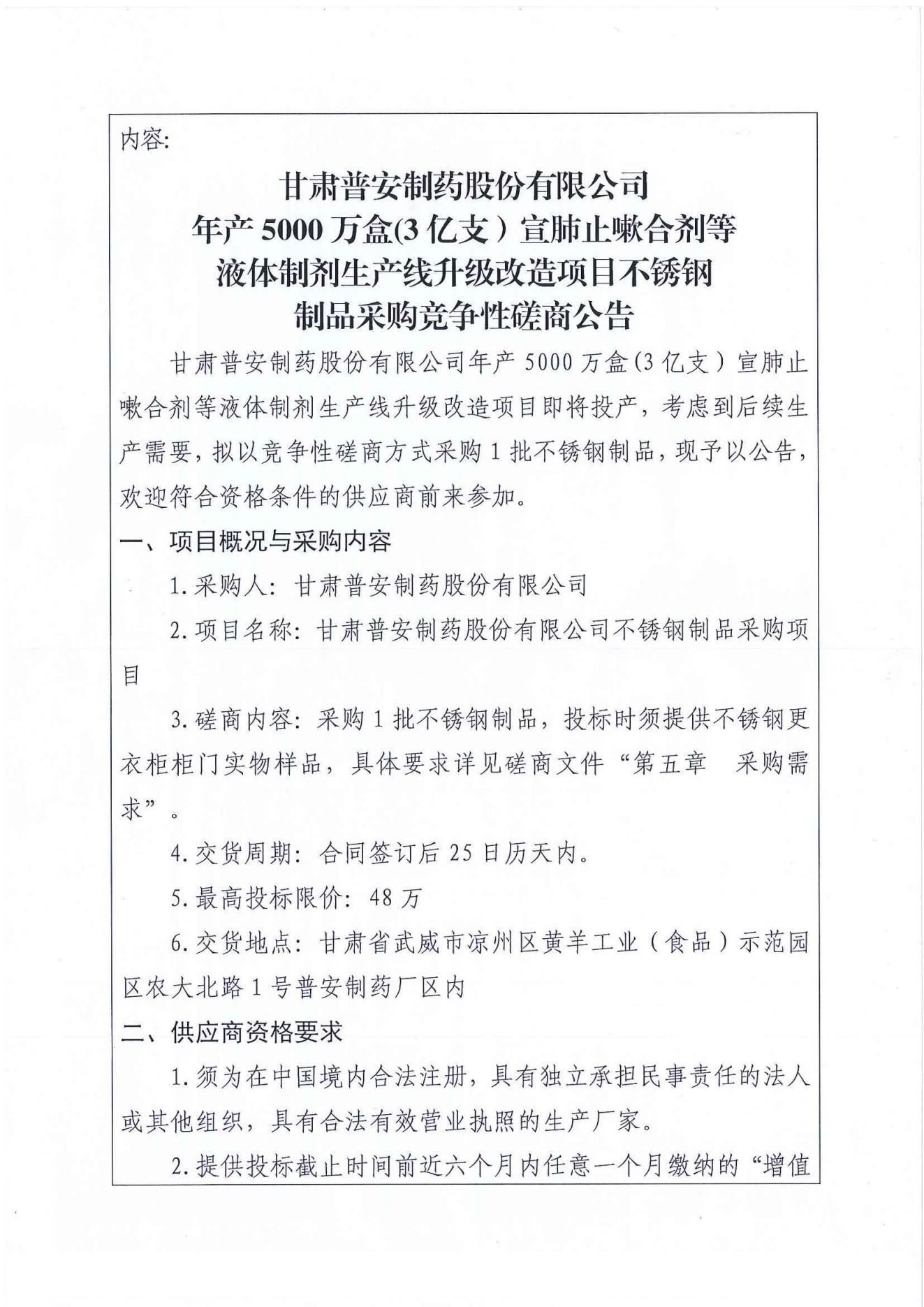 甘肅普安制藥股份有限公司年產(chǎn)5000 萬(wàn)盒(3億支)宣肺止嗽合劑等液體制劑生產(chǎn)線升級(jí)改造項(xiàng)目不銹鋼制品采購(gòu)競(jìng)爭(zhēng)性磋商公告