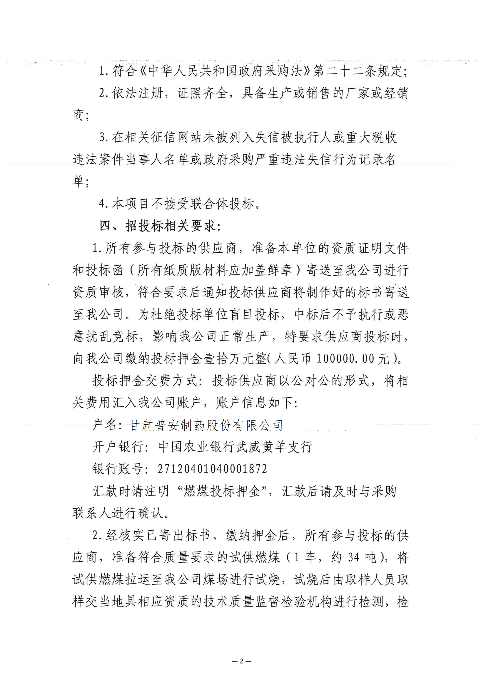 甘肅隴神戎發(fā)藥業(yè)股份有限公司物流中心2024年度燃煤競(jìng)爭(zhēng)性磋商采購(gòu)公告
