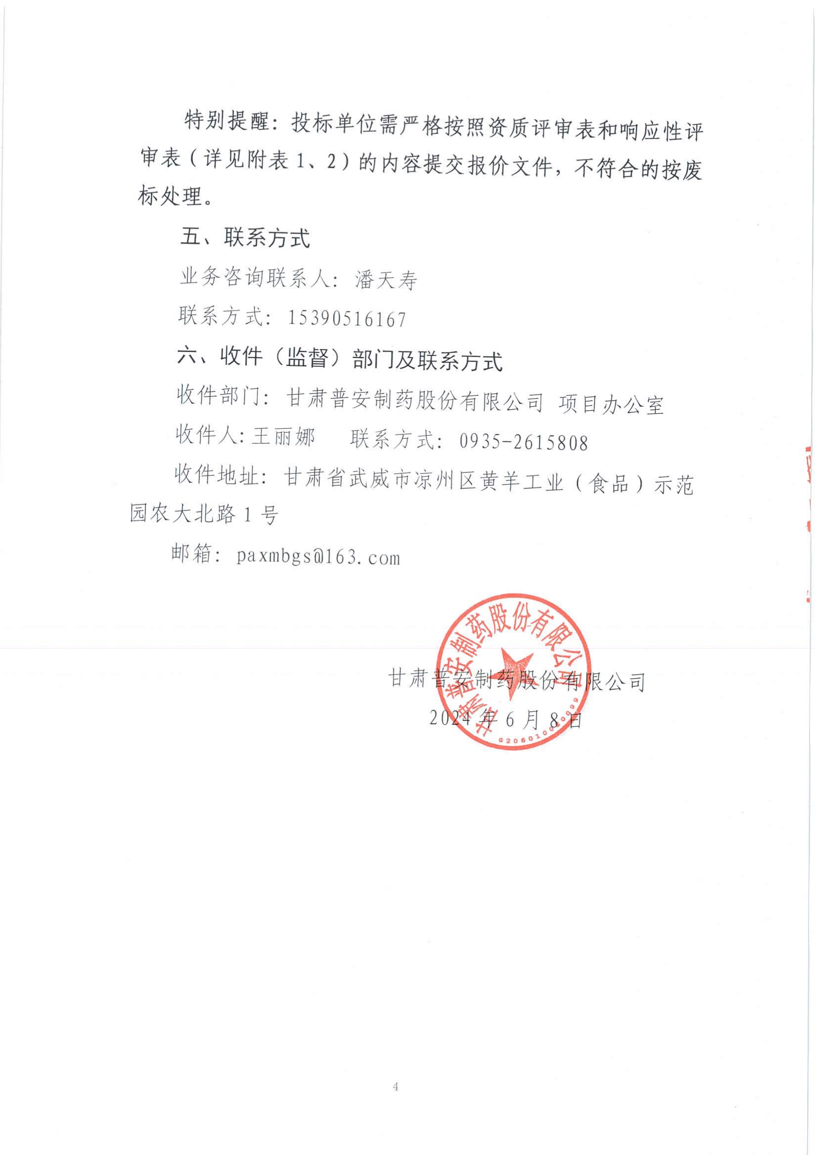 甘肅普安制藥股份有限公司2024年-2025年基礎設施改造項目結算審核服務第二次招標公告