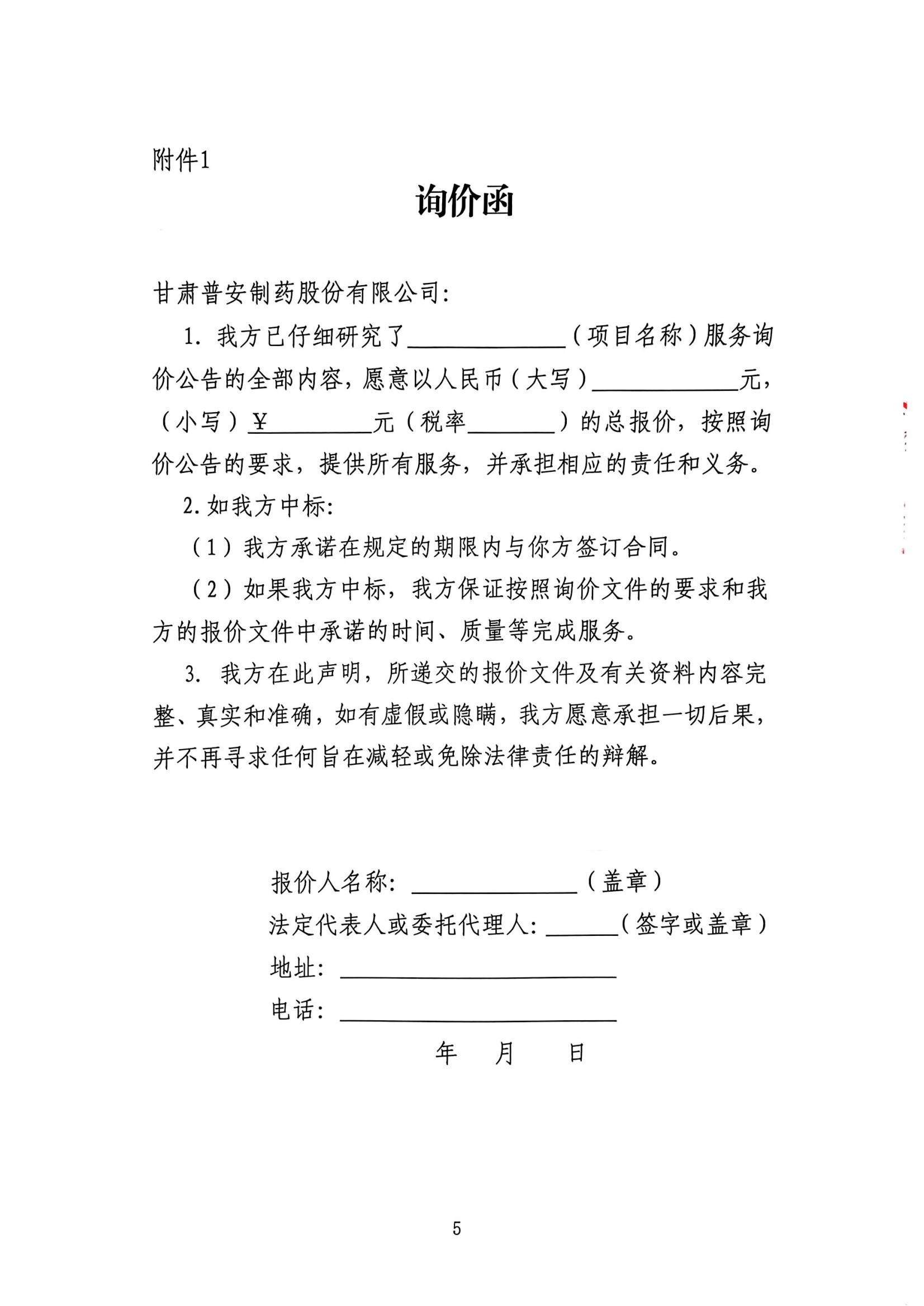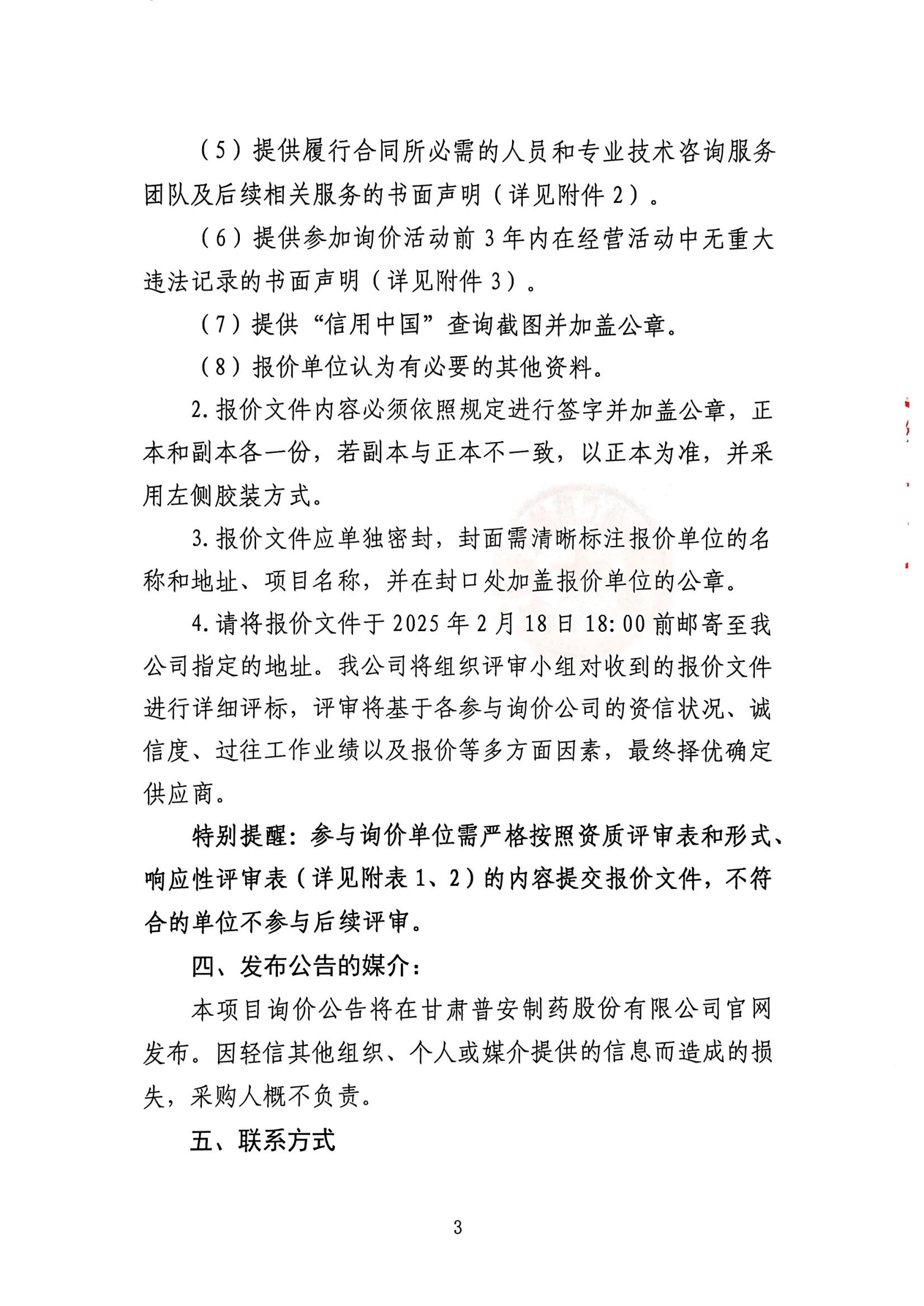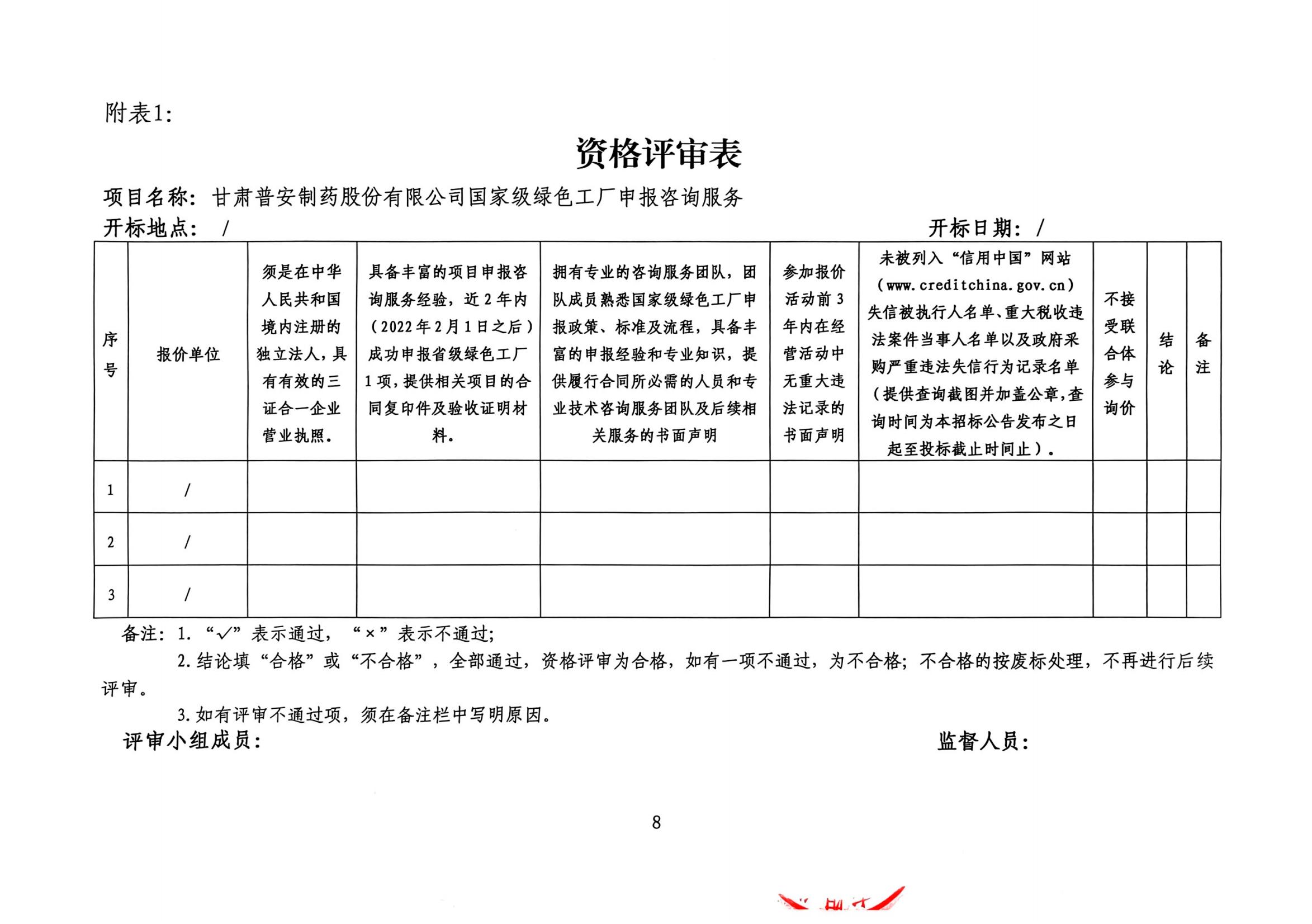 甘肅普安制藥股份有限公司國家級綠色工廠申報咨詢服務(wù)詢價公告