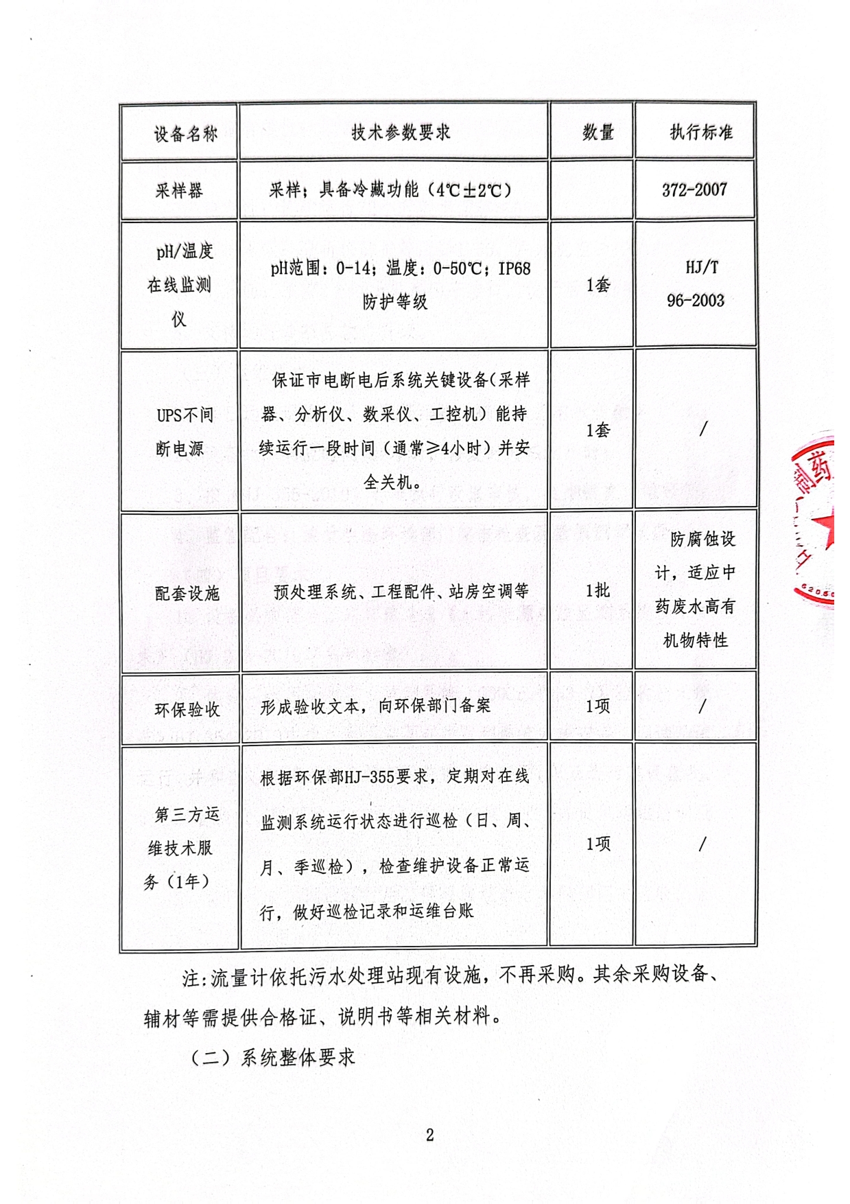 甘肅普安制藥股份有限公司污水處理站在線監測設備及第三方運維服務采購項目